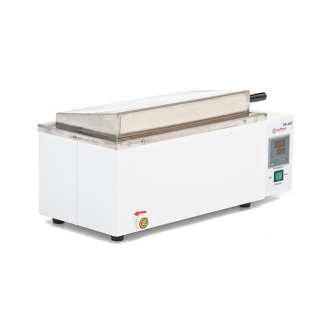 • Средняя баня для дистилляции, сушки, выпаривания и термостатического нагревания. Корпус изготовлен из металла, а защитная крышка - из нержавеющей стали. Рабочая камера бани изолирована от корпуса элементами теплоизоляции, что исключает вероятность травмирования пользователя. Интуитивно понятная панель управления с двумя цифровыми табло позволяет без труда настроить работу устройства и обеспечить высокую точность поддержания температуры.