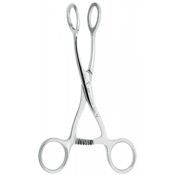 -Пинцет для языка с круглой рабочей частью и фиксатором на ручке, изогнутый,17 см