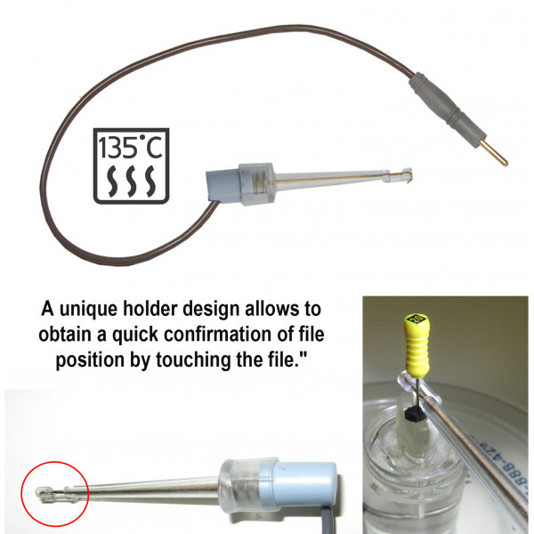 Щуп-зажим для рабочих файлов. Используется в качестве зажима активного электрода (файла) при проведении процедур апекслокации, депофореза, электрофореза и анодной стерилизации.
