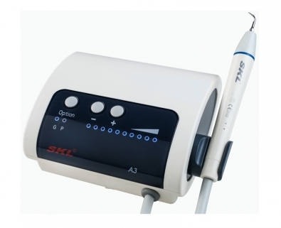 Ультразвуковой прибор с автономной подачей воды и светодиодной оптикой. Три режима работы: стандартная, эндодонтия, пародонтия.. 6 насадок в комплекте (G1x2, G2, G4, P1, E1), педаль, автоклавируемая съемная ручка